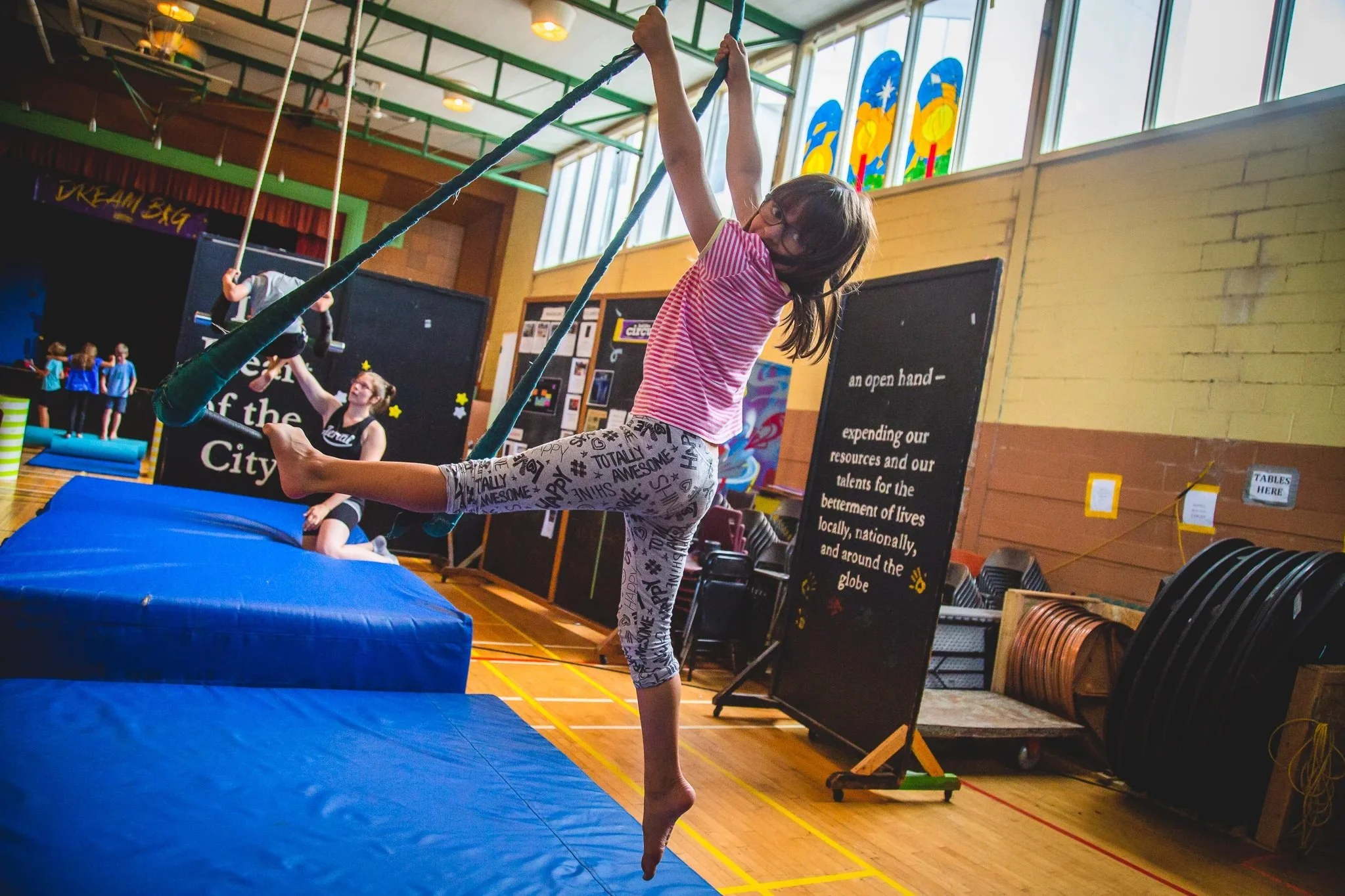 We have a threefold mission: to practice and perform circus work at the highest level, to teach those skills to students at our school, and to work with youth at risk through our social circus initiatives.